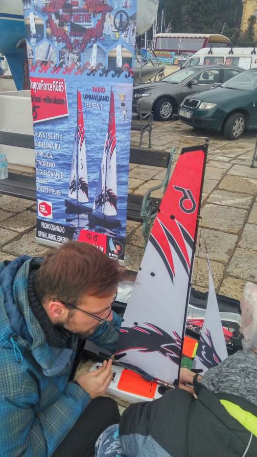 Također, prema dogovoru nakon IOM Opatija Cupa popravljene su tri DragonForce 65 jedrilice. Zamjenske dijelove su poslani na korištenje, g. Robert Matulja je popravio baterije za punjenje za modele, a g Robert Grubiša jer dovršio sve ostale potrebne izmjene dotrajalih dijelova i druge popravke te su sada sva tri modela spremna za jedrenje s djecom i mladima.
