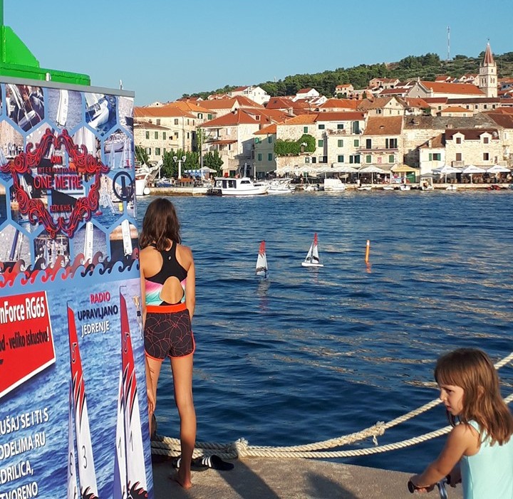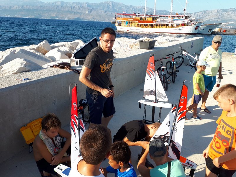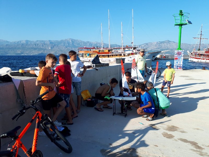 Kao i prošle godine, brodomodelari su imali zadovoljstvo sudjelovati na Maloj noćnoj regati, modeli su otplesali svoj ples u postirskoj luci i predstavili se brojnim zainteresiranima, kako mlađima tako i starijima. Mentori iz JK Zenta, Duje i Mladen došli su u petak u Postira te na lukobranu pripremili sve što je potrebno za promociju modela. Već u 18 sati im se pridružilo nekoliko mladih jedriličara iz lokalnog jedriličarskog kluba te počeli sastavljati modele sa mentorima, dok je u sljedećih 15 minuta tu bilo već dvadesetero djece. Većina polaznika radionice su bila djeca osnovnoškolskog uzrasta te su se većim dijelom već imali prilike susresti i okušati u jedriličarskom modelarstvu. S obzirom na velik broj djece, formirane su dvije grupe. Dok su oni iskusniji stavili dva modela u more i zajedrili, početnici su sa mentorom detaljnije upoznali modele. Prilikom sastavljanja mentori su upoznali polaznike sa svim dijelovima modela te osnovama jedriličarskog modelarstva. Pričalo se o trupu broda i interesantnom sadržaju unutar trupa: baterija i mali elektromotor koji pokreće cijeli sustav komandi čime se upravlja kormilom i jedrima. Zaista je zanimljivo gledati kako se pomicanjem komande na daljinskom upravljaču zatežu ili popuštaju jedra. Djeca su imala prilike vidjeti kako se spaja baterija, kako se provjerava napunjenost baterije te kako se sastavlja jedrilje. Cijeli proces zahtijeva zainteresiranost, fokusiranost i preciznost mladih polaznika. No ovakav način približavanja tehničke kulture djeci i mladima je svakako jedan od najzanimljivijih.