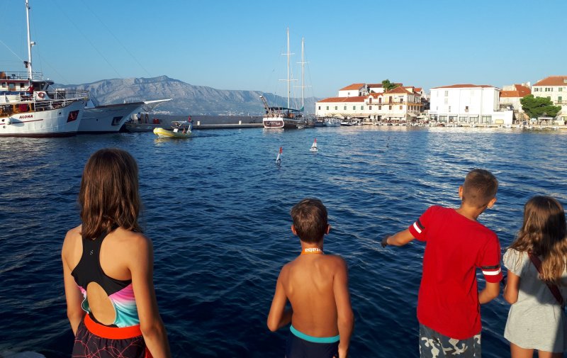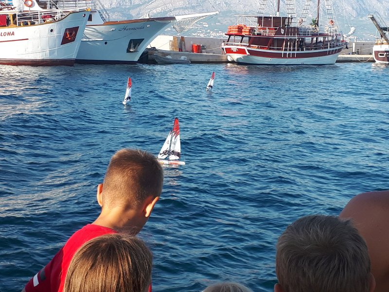Mentori su postavili dvije plutače u moru i formirali regatno polje. Nakon priprema svih modela i svih polaznika radionice, formirane su grupe od po troje natjecatelja te je započela zabava na moru. Sve grupe su imale priliku završiti regate prije konačnog pada vjetra u 20.30. Finale pobjednika grupa nije se nažalost uspjelo održati, ali to nipošto nije narušilo ljepotu druženja i učenja u zaista divnom ambijentu.