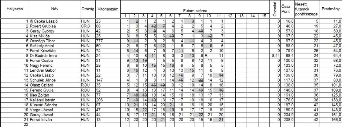 | 21. | Istvan Forrai | HUN 13 | 166 |