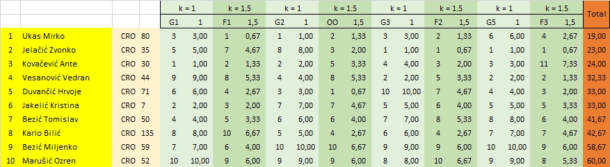| 1. | Mirko Ukas | CRO 80 | 19.00 |